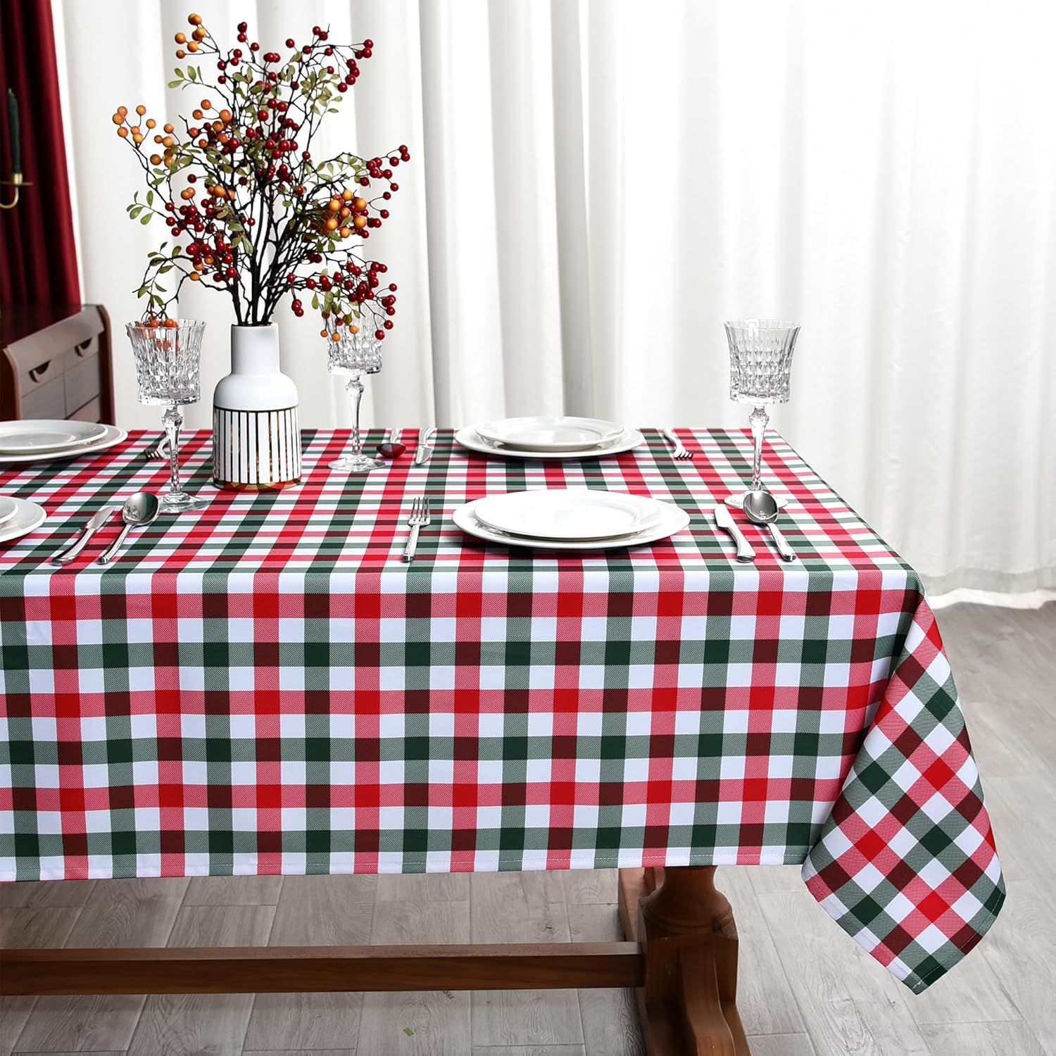 Gingham Xmas Tablecloth Fabric - Oblong 58x120 Water Resistant Christmas Plaid Table Cloth for Indoor/Outdoor Use - Red Tabletop Cover Perfect for Birthday, Picnics, Gardens