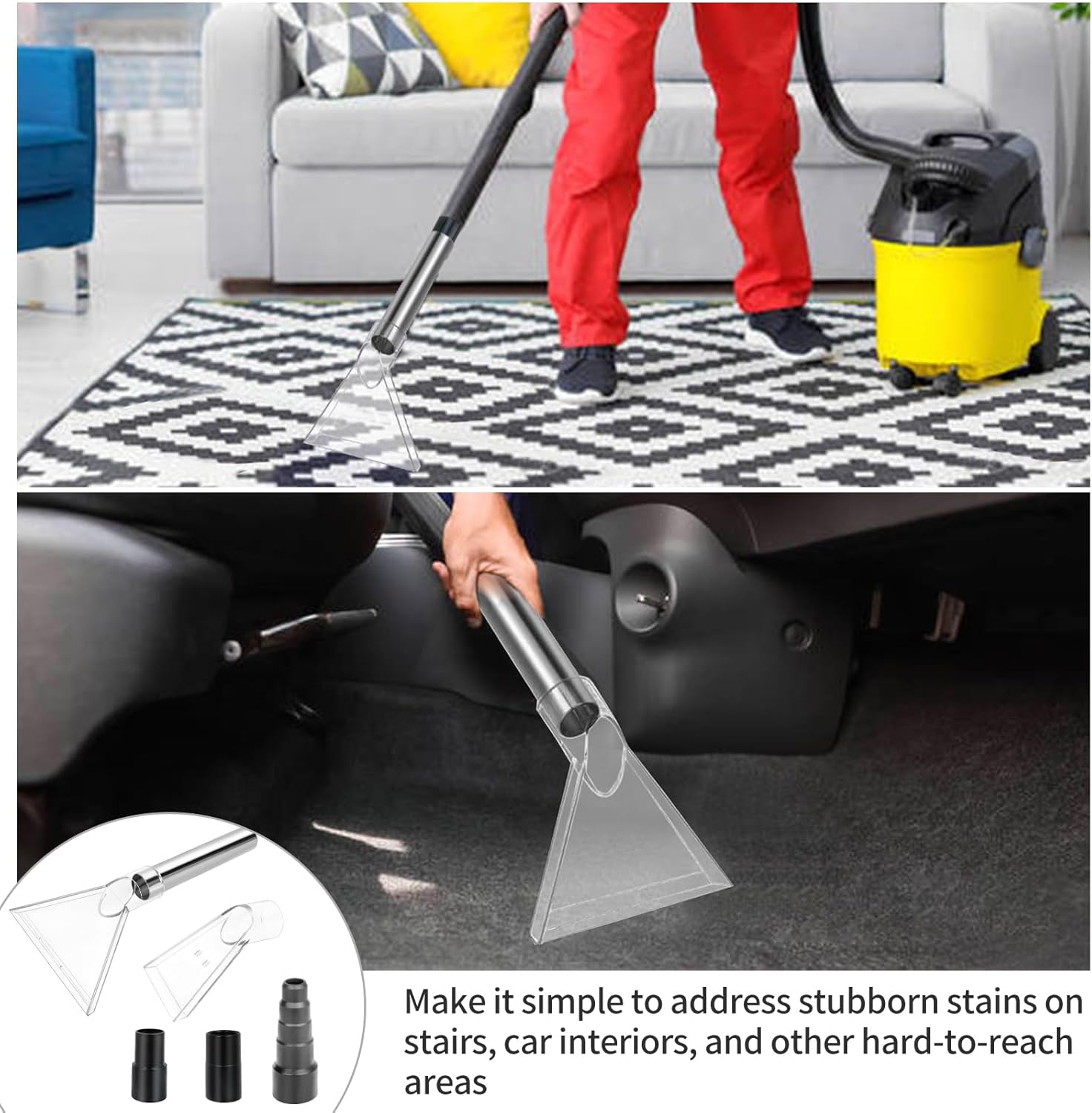 - Wide Application: Connect the extractor head, stainless steel tube, adapter, and vacuum cleaner in turn, to gain a vac extractor and put it into use immediately. The vacuum attachment can widely be used in dust, hairs, crumbs, soot, liquid, and auto detailing. A great vacuum cleaning tool on car detailing, mats, carpets, sofas, etc. Rapid extraction of sewage from cleaning, quick clean and dry.