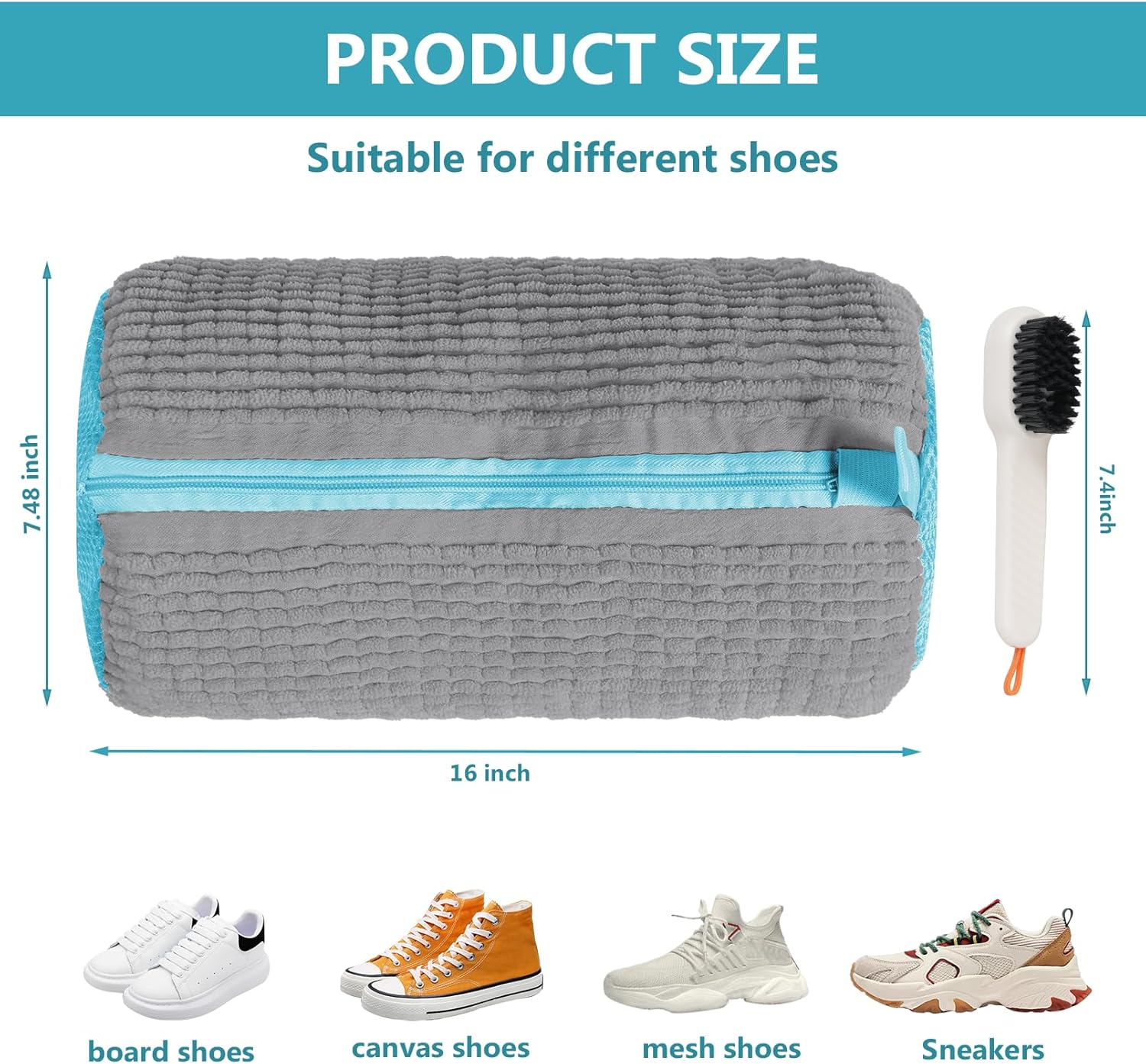 - Suitable for Most Shoe Sizes and Types: Our shoe washing bag measures 16×7.48 inches, which can accommodate most shoes on the market, whether you're washing running shoes, casual sneakers, or even kids’ footwear, this laundry shoe bag is the perfect solution.